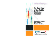 An overview of the public relations function /Shannon A. Bowen, Brad. Rawlins, Thomas R. Martin New York : Business Expert Press, 2010xi, 186 p. : ill "This book provides an executive review of the field of public relations with a focus on what managers need to know in order to master the function quickly and effectively. Throughout the text, we integrate the academic with the professional by asking, how can an executive use this knowledge to make the most of the public relations function, department, and initiatives in order to help their whole organization be successful?"--Abstract from book.