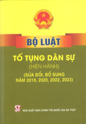 Bộ luật Tố tụng dân sự (hiện hành) (sửa đổi, bổ sung năm 2019, 2020, 2022, 2023) Hà Nội : Chính trị quốc gia Sự thật, 2024452 tr. ; 20.5 cm.Việt Nam (CHXHCN). Luật lệ và sắc lệnhTrình bày toàn văn Bộ Luật Tố tụng dân sự với những quy định chung về nhiệm vụ và hiệu lực; những nguyên tắc cơ bản; thẩm quyền của toà án; cơ quan tiến hành tố tụng, người tiến hành tố tụng và việc thay đổi người tiến hành tố tụng; thành phần giải quyết vụ việc dân sự; người tham gia tố tụng; chứng minh và chứng cứ; các biện pháp khẩn cấp tạm thời; án phí, lệ phí và chi phí tố tụng khác; cấp, tống đạt, thông báo văn bản tố tụng... và các điều khoản thi hành